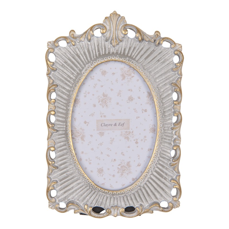 Clayre & Eef Bilderrahmen 10x15 cm Grau Goldfarbig Kunststoff