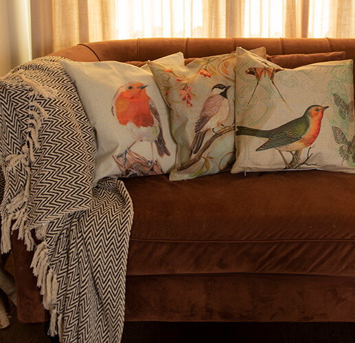 Mit einer Reihe von Dekokissen und einer passenden Decke können Sie im Handumdrehen auf jeder Couch eine wunderbare Entspannungsumgebung schaffen. Auch Sessel erhalten mit diesen Elementen einen wärmeren und gemütlicheren Look. Nach einem langen Tag in einem Stapel Kissen unter einer warmen Decke verstecken, während man Schokolade isst... Mehr brauchen wir doch nicht, oder?