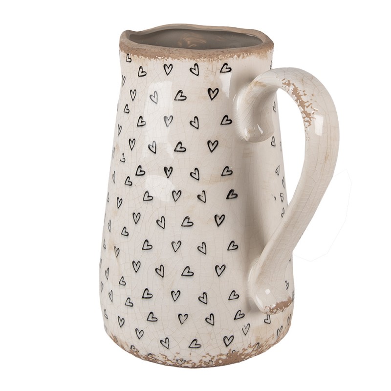 Clayre & Eef Dekorative Kanne 21x15x23 cm Beige Schwarz Keramik Herzen