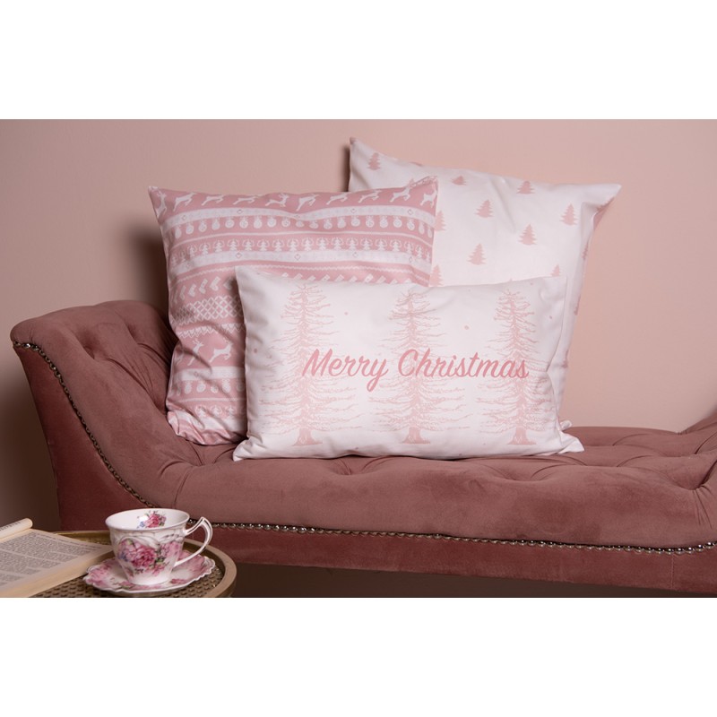 Clayre & Eef Kissenbezug 45x45 cm Rosa Weiß Polyester Weihnachtsbäume