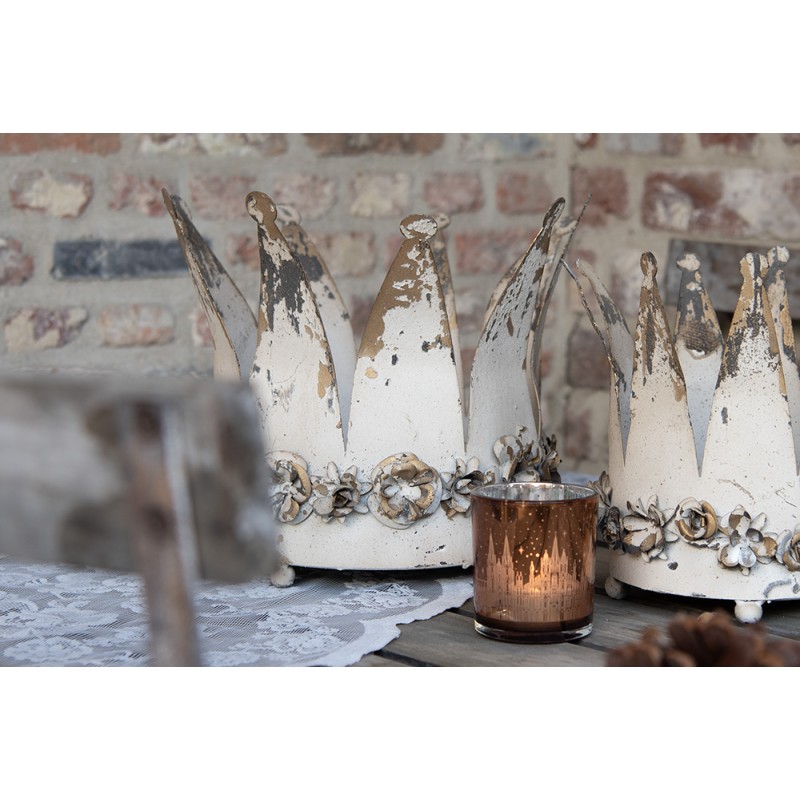 Clayre & Eef Dekoration Schale 2er Set Krone Ø 33 Ø 27 cm Weiß Eisen