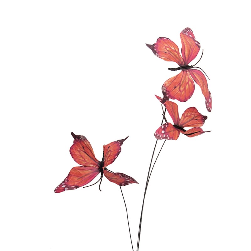 Clayre & Eef Dekoration Ast Schmetterling 10x10x65 cm Orange Textil