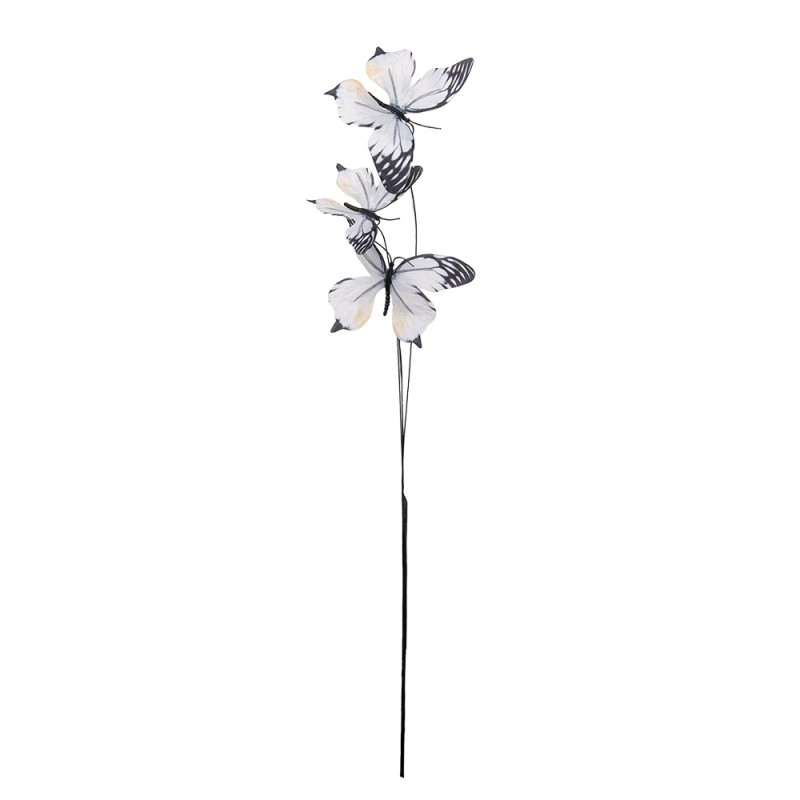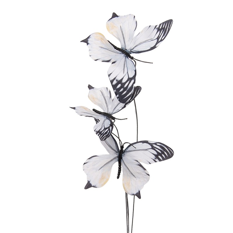 Clayre & Eef Dekoration Ast Schmetterling 10x10x65 cm Weiß Textil