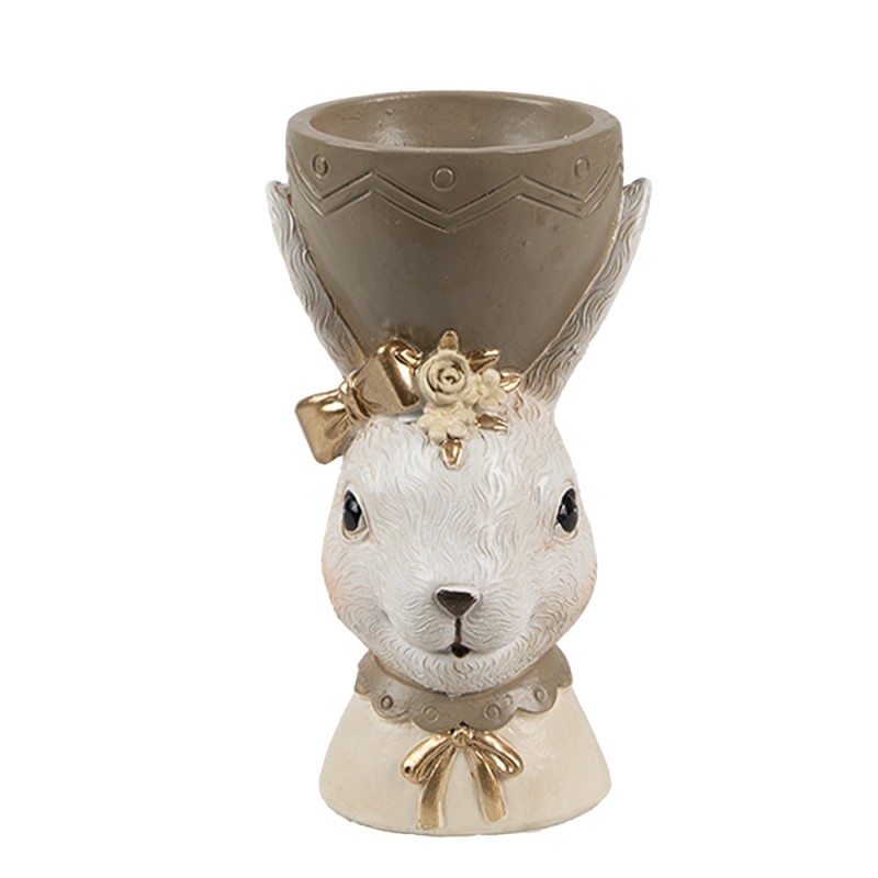 Clayre & Eef Eierbecher Kaninchen 7x7x12 cm Beige Kunststoff