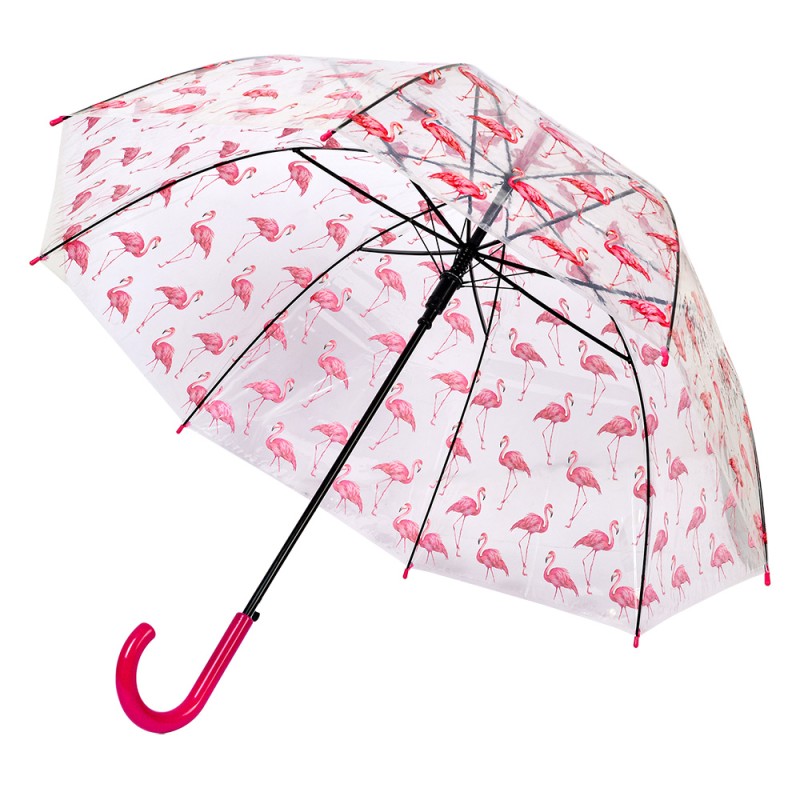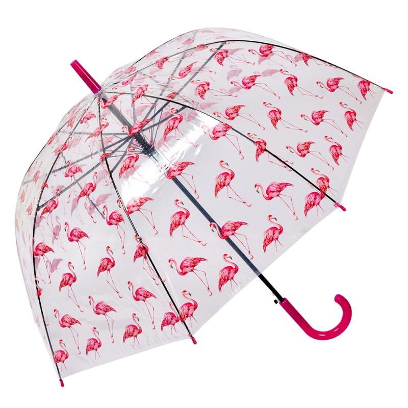 Clayre & Eef Erwachsenen-Regenschirm Ø 90 cm Transparant Kunststoff Flamingo