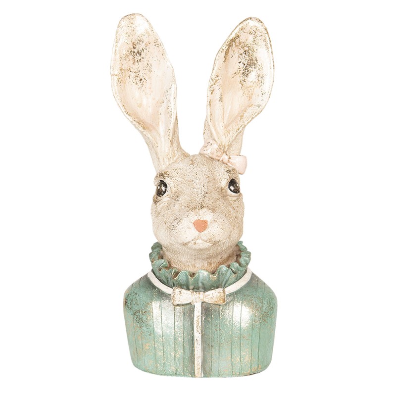 Clayre & Eef Figur Kaninchen 17 cm Beige Grün Polyresin