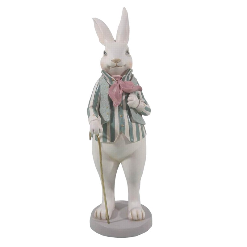 Clayre & Eef Figur Kaninchen 12x9x31 cm Weiß Grün Polyresin