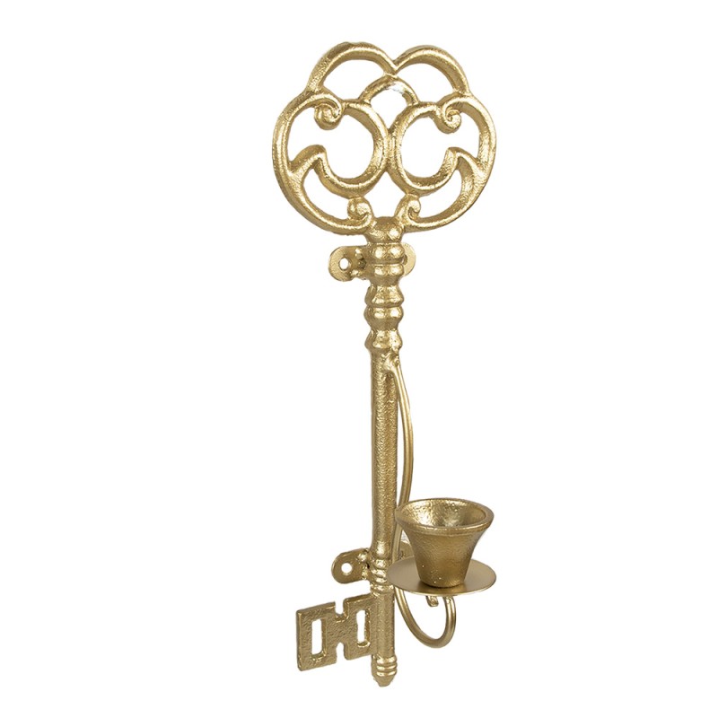 Clayre & Eef Kerzenständer Schlüssel 34 cm Goldfarbig Eisen