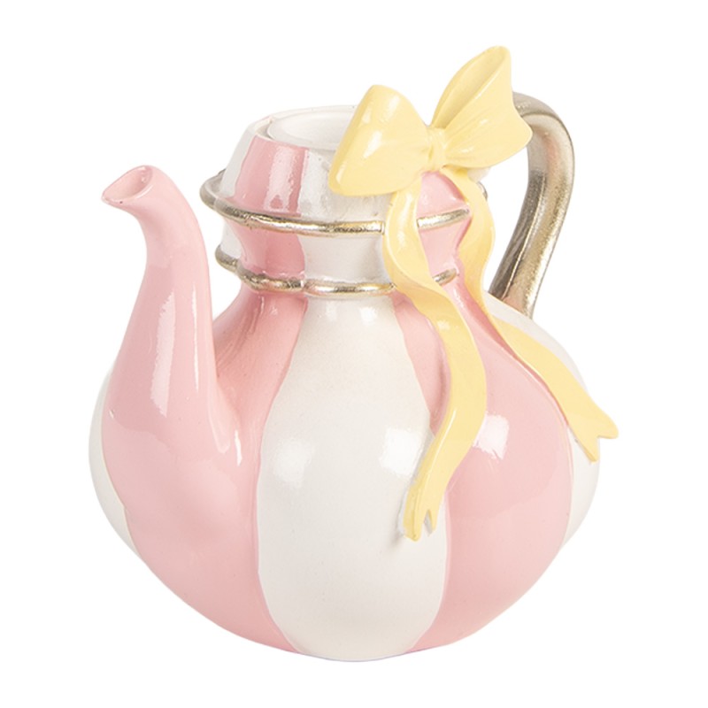 Clayre & Eef Kerzenständer Teekanne 13x10x11 cm Rosa Kunststoff
