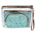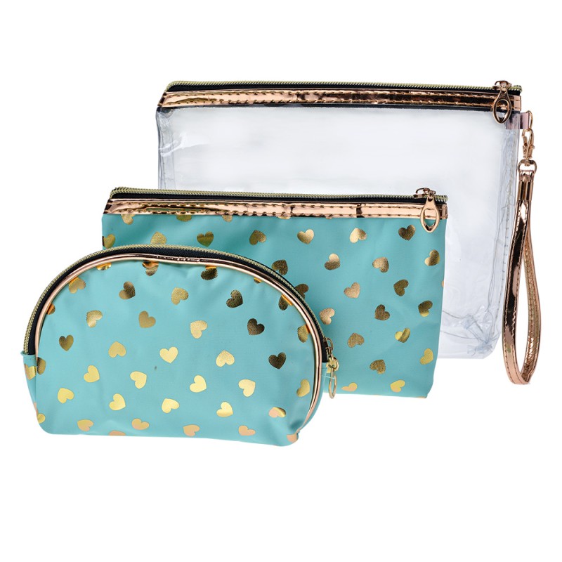 Juleeze Damenkulturtasche 3er set 23x17 / 20x13 / 18x12 cm Türkis Polyester Herzen