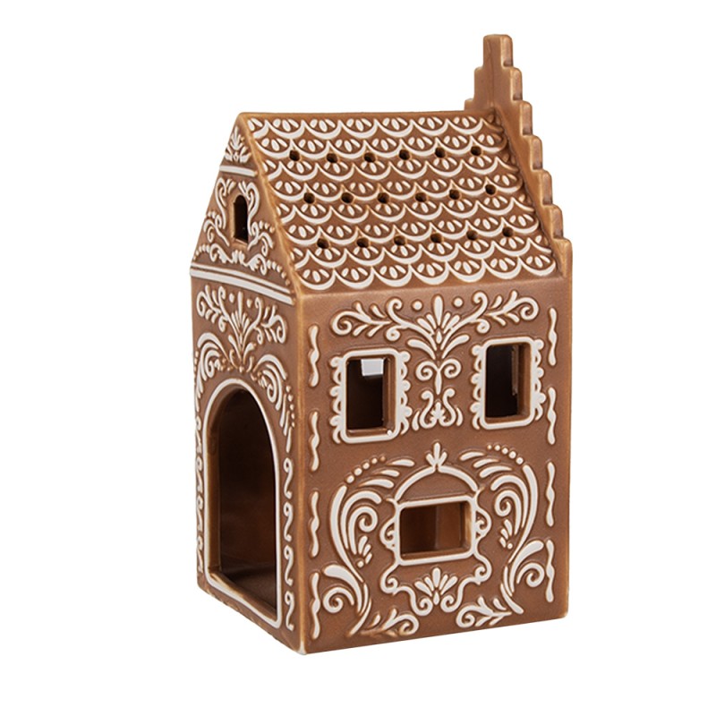 Clayre & Eef Teelichthalter Lebkuchenhaus 7x7x15 cm Braun Porzellan