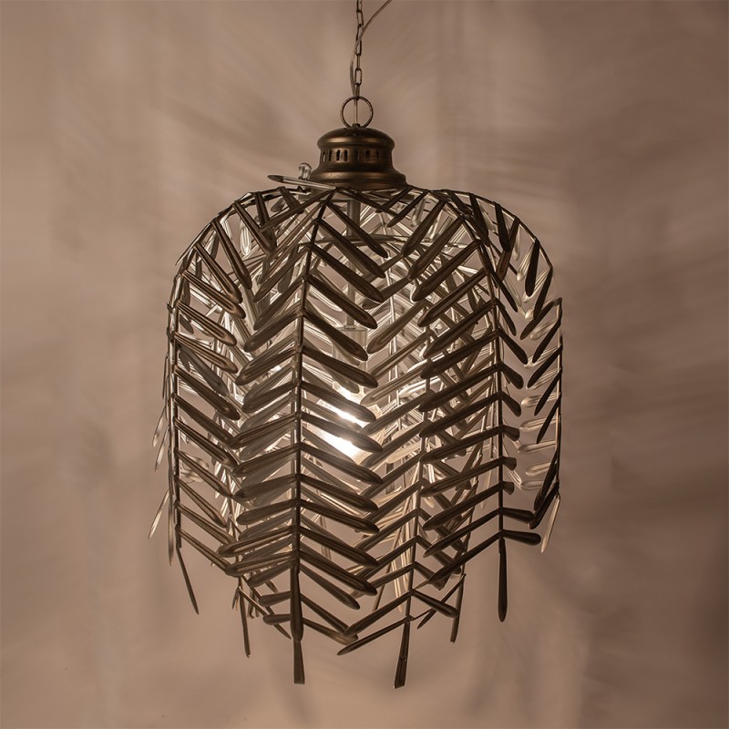 Clayre & Eef Hängelampe Ø 49x66 cm Goldfarbig Grau Eisen Blätter
