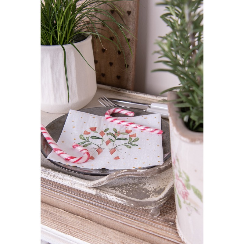 Clayre & Eef Servietten Papier 20er Set 33x33 cm (20) Weiß Rot Papier Zuckerstange Weihnachten
