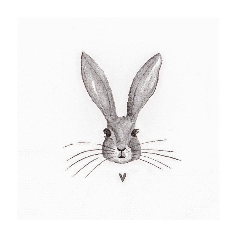 Clayre & Eef Servietten Papier 20er Set 33x33 cm Weiß Papier Kaninchen