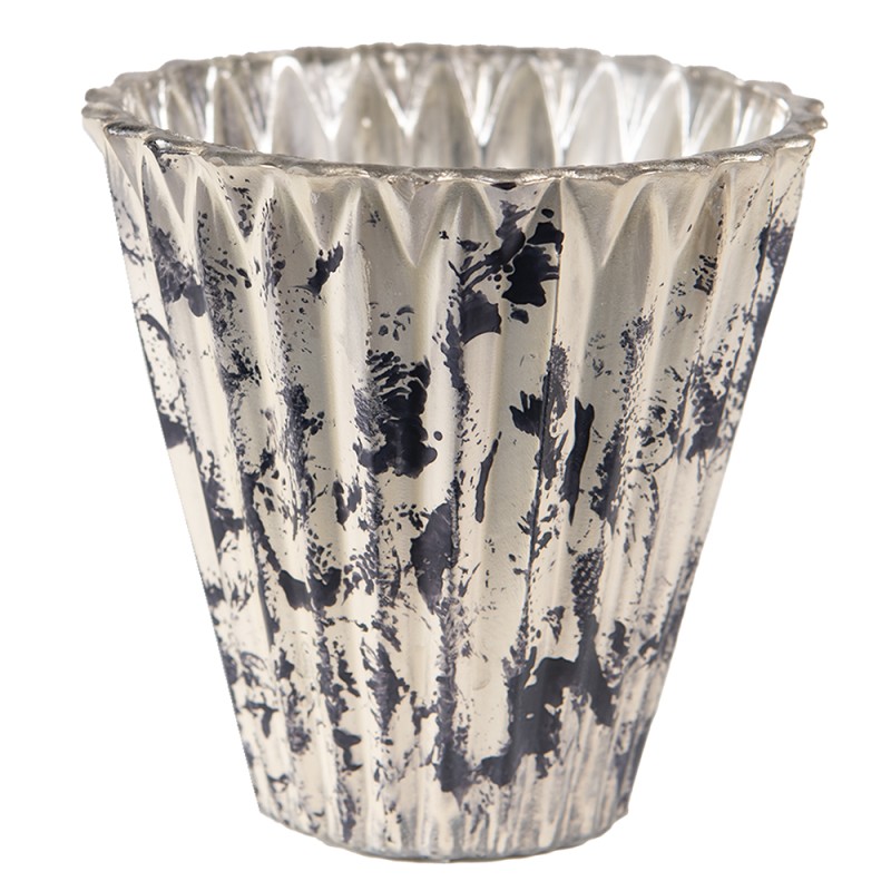 Clayre & Eef Teelichthalter Ø 10x10 cm Grau Beige Glas