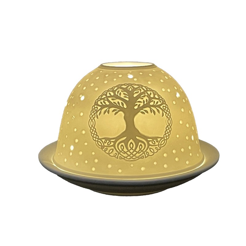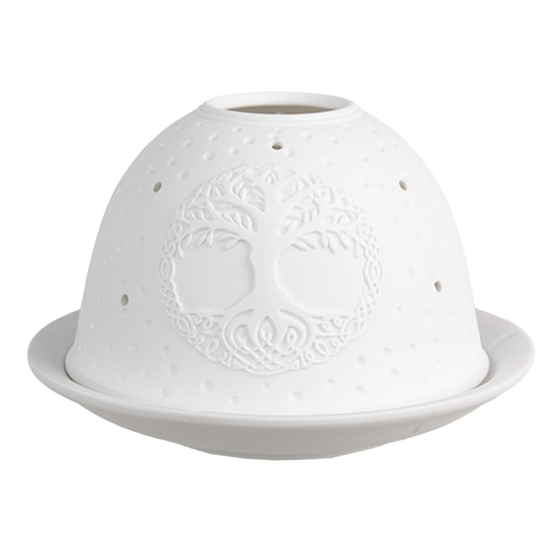 Clayre & Eef Teelichthalter Ø 12x8 cm Weiß Porzellan Lebensbaum