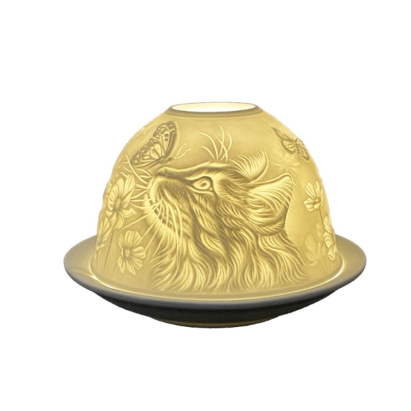 Clayre & Eef Teelichthalter Ø 12x8 cm Weiß Porzellan Katze