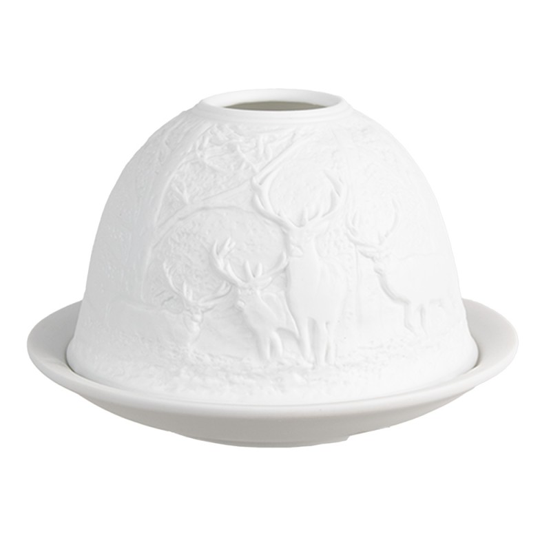 Clayre & Eef Teelichthalter Ø 12x8 cm Weiß Porzellan Hirsch
