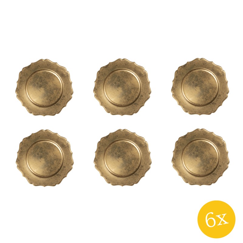 Clayre & Eef Onderbord set van 6 stuks Ø 33 cm Goudkleurig Kunststof Rond Kaarsenplateau