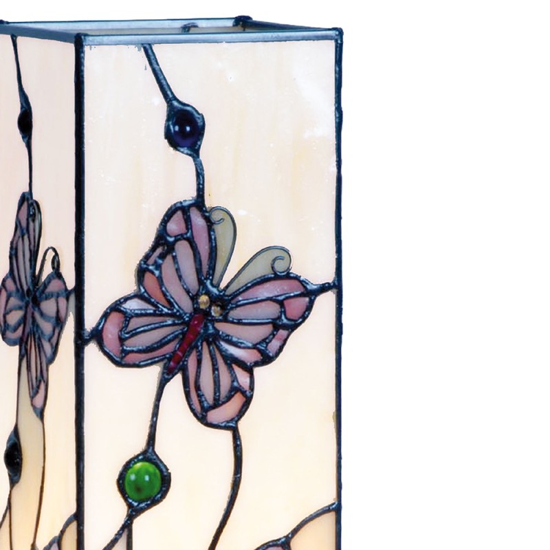 Lumilamp Tiffany Tischlampe 12x12x35 cm Weiß Rosa Glas Schmetterling