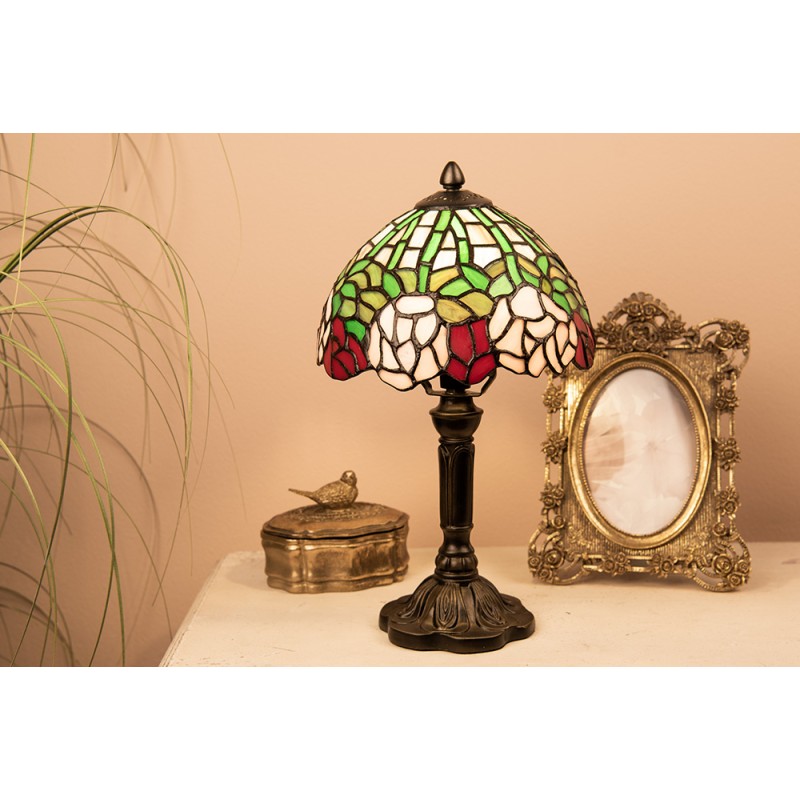 Lumilamp Tiffany Tischlampe Ø 21x39 cm Grün Rosa Glas Blumen