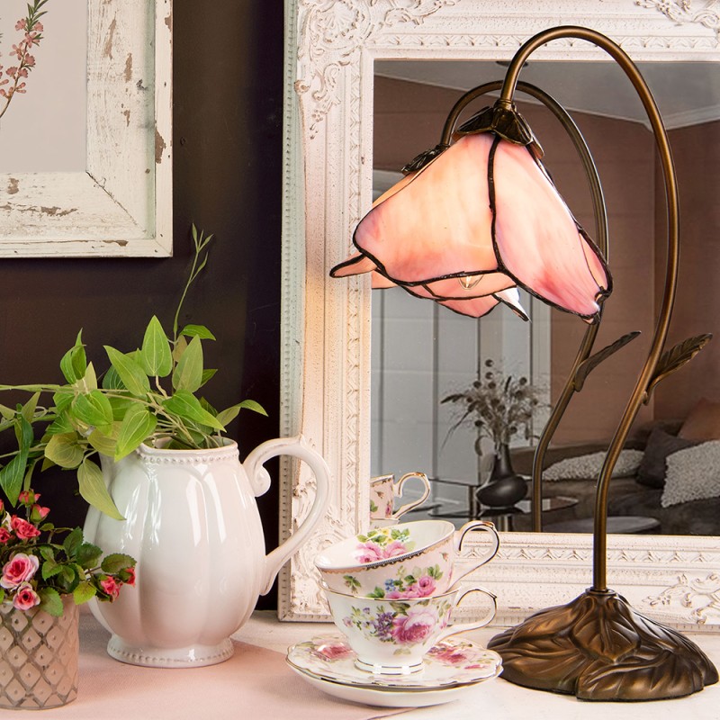 Lumilamp Tiffany Tischlampe 30x48 cm Rosa Glas