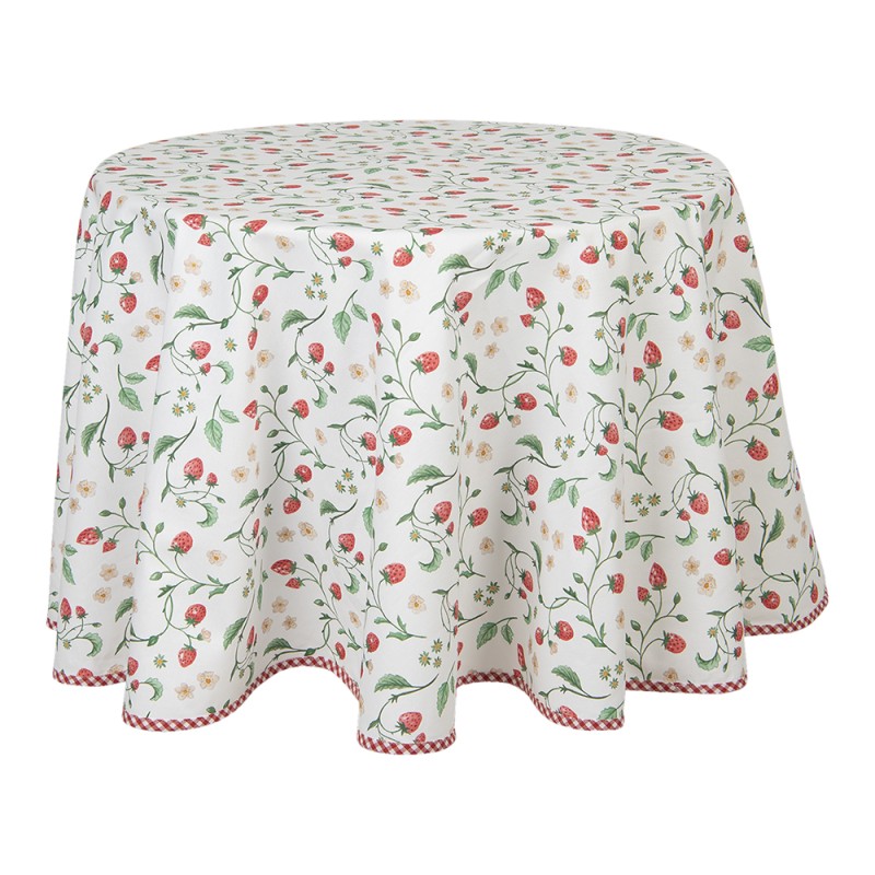 Clayre & Eef Tischdecke Ø 170 cm Weiß Rot Baumwolle