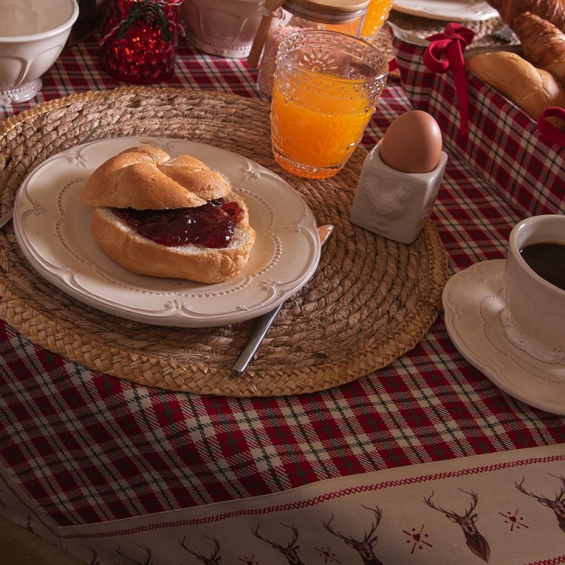 Echte Weihnachtsliebhaber werden diese traditionelle Textilserie in Weihnachtsstimmung lieben. Die schöne Illustration des Rentiers ist das Hauptelement dieser Serie. Das passende Karomuster und der cremefarbene Hintergrund machen die Atmosphäre perfekt. Alle Artikel dieses Themas sind wunderbar aufeinander abgestimmt und schaffen Atmosphäre in der Küche und auf dem Tisch. Tischdecken, Tischsets, Küchenschürzen und Brotkörbe sind schöne Beispiele dieser Serie. Das ergänzende Geschirr, die Gästehandtücher und die Fußmatten vervollständigen das Weihnachtsfest in allen Bereichen des Hauses.