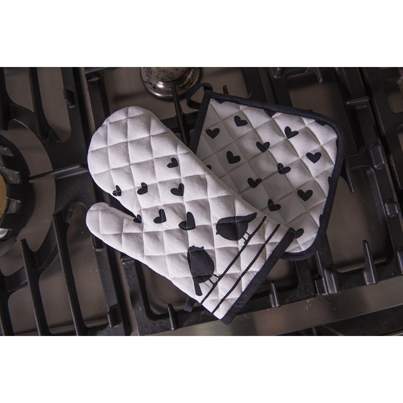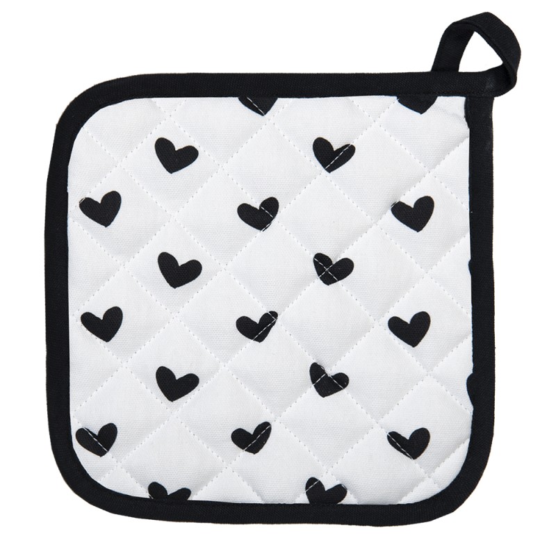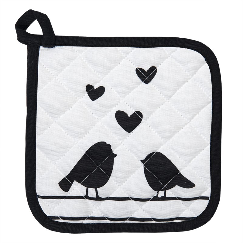 Clayre & Eef Topflappen 20x20 cm Weiß Schwarz Baumwolle Herzen Vögel