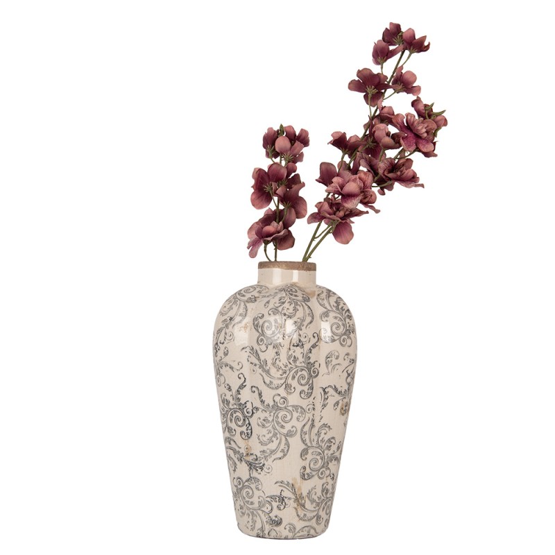 Clayre & Eef Vase Ø 21x35 cm Beige Grau Keramik Blumen