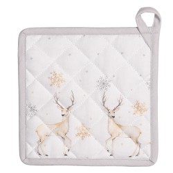 Clayre & Eef Ofenhandschuh 18x30 cm Beige Rot Baumwolle Hirsch