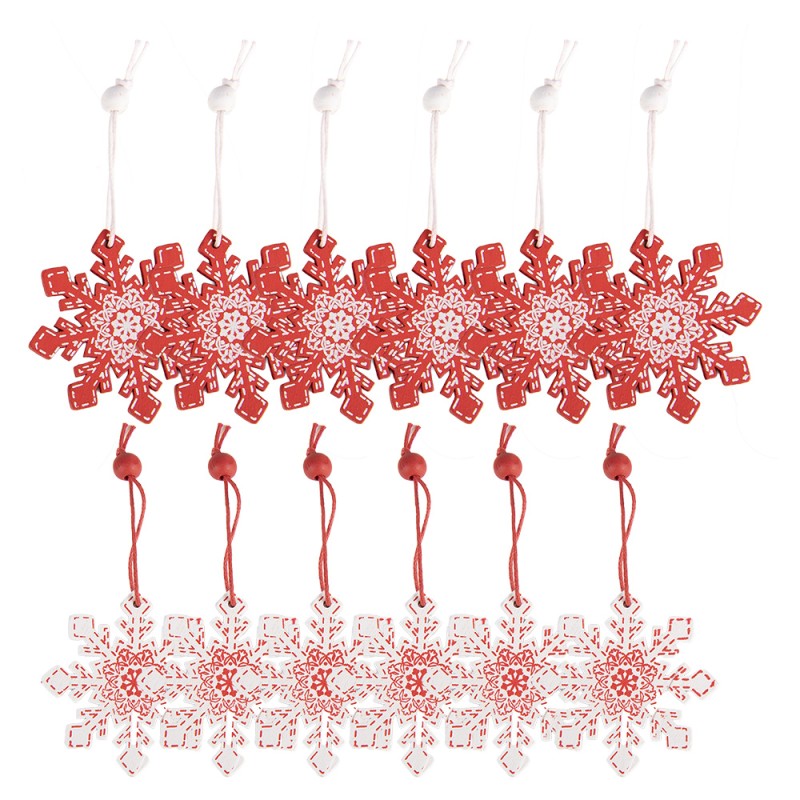 Clayre & Eef Weihnachts-Anhänger 12er-Set Schneeflocke 13x13 cm Rot Holz