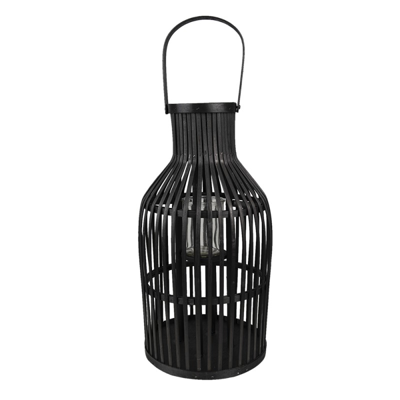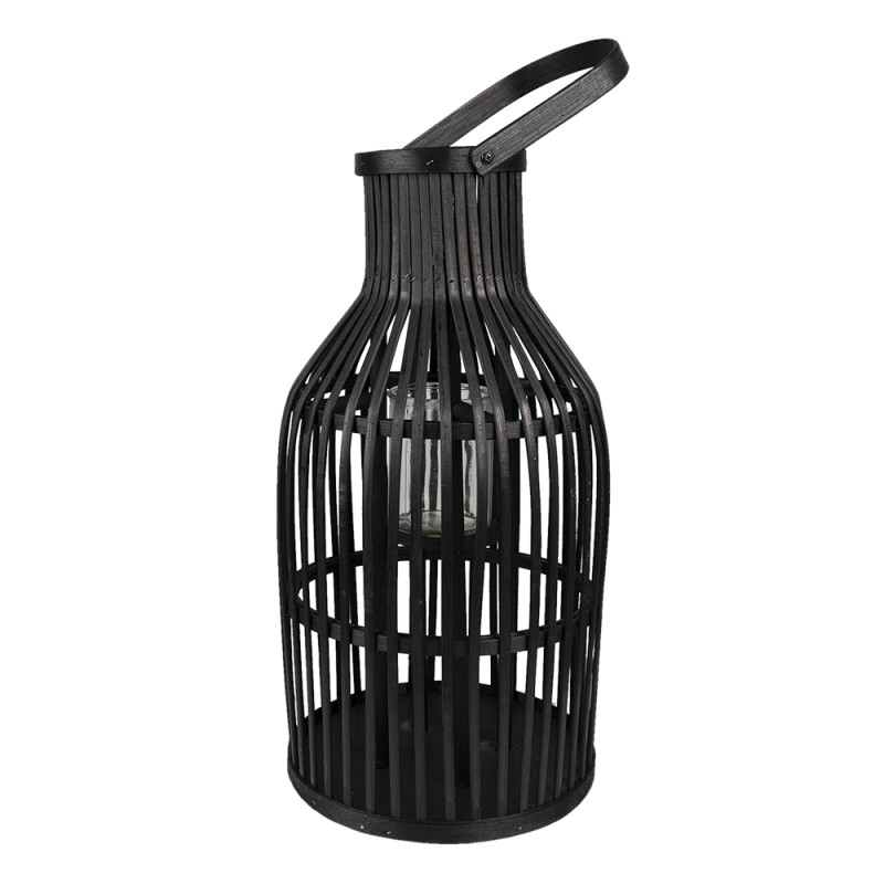 Clayre & Eef Windlicht Ø 23x39 cm Schwarz Bambus