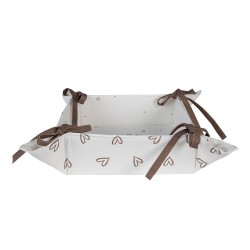 In addition to our bread baskets, we also offer a lovely bread bag in our collection. This bread bag is gray in color and features a neutral yet charming heart print. It measures 28x68 cm, so you can carry plenty of bread or even a long baguette. It's practical for both!