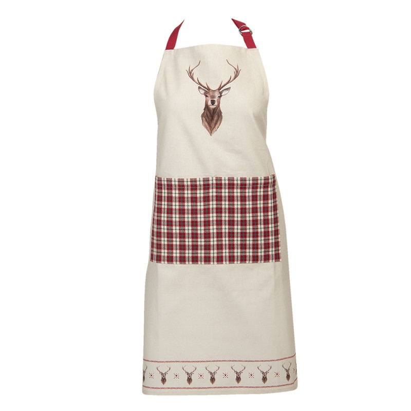 Clayre & Eef Kitchen Apron 70x85 cm Beige Red Cotton Deer