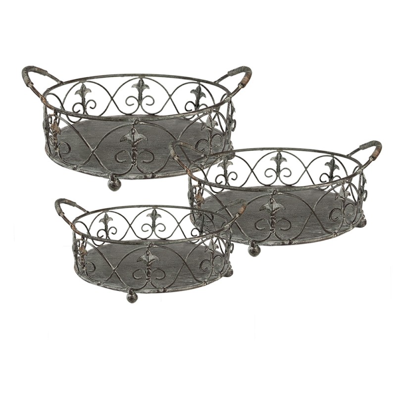 Clayre & Eef Storage Basket Set of 3 Grey Green Iron