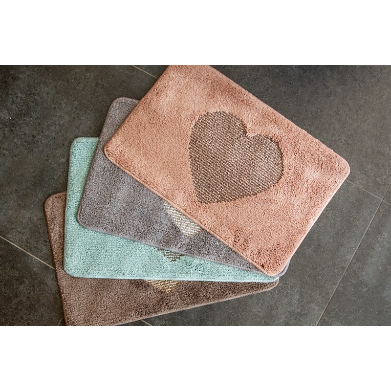 Clayre & Eef Bath Mat 58x38x1 cm Grey Polyester Heart