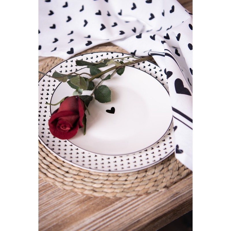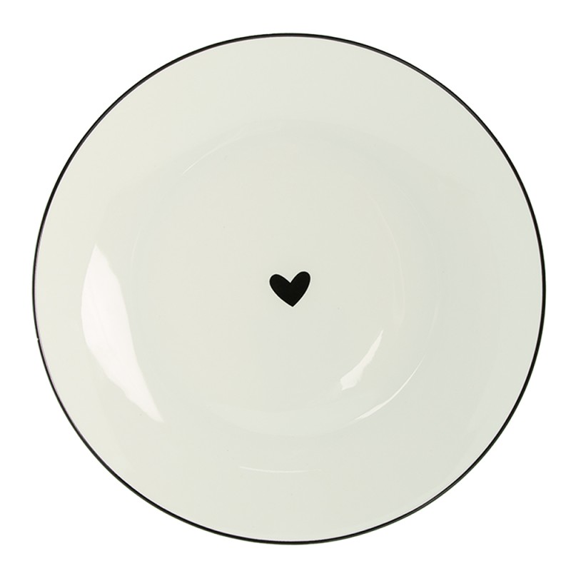 Clayre & Eef Breakfast Plate Ø 20 cm White Black Porcelain Hearts