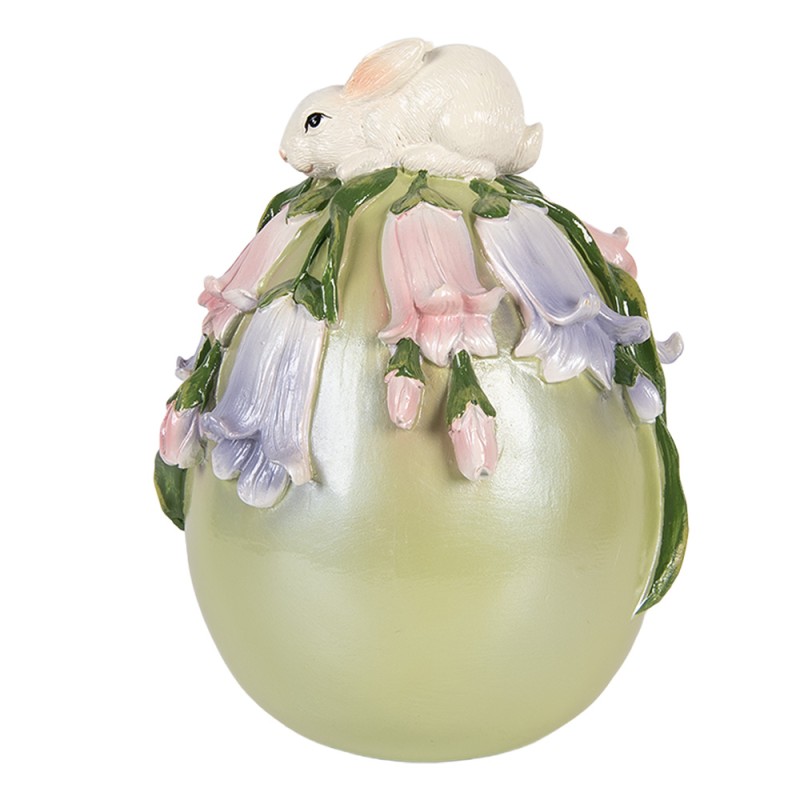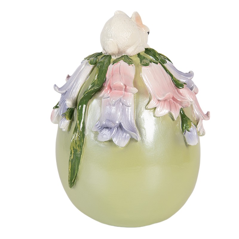 This decorative piece is not only aesthetically pleasing but also durable and easy to maintain. A simple wipe with a damp cloth is sufficient to keep the figurine in top condition. Let the decoration rabbit on egg shine in your home and enjoy the smiles it will evoke from your guests and family. With its ideal dimensions and playful character, this decoration offers a unique way to highlight your personal style and brighten up your space.