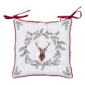 Clayre & Eef Chair Cushion Foam 40x40x4 cm White Red Cotton Deer Holly Leaves