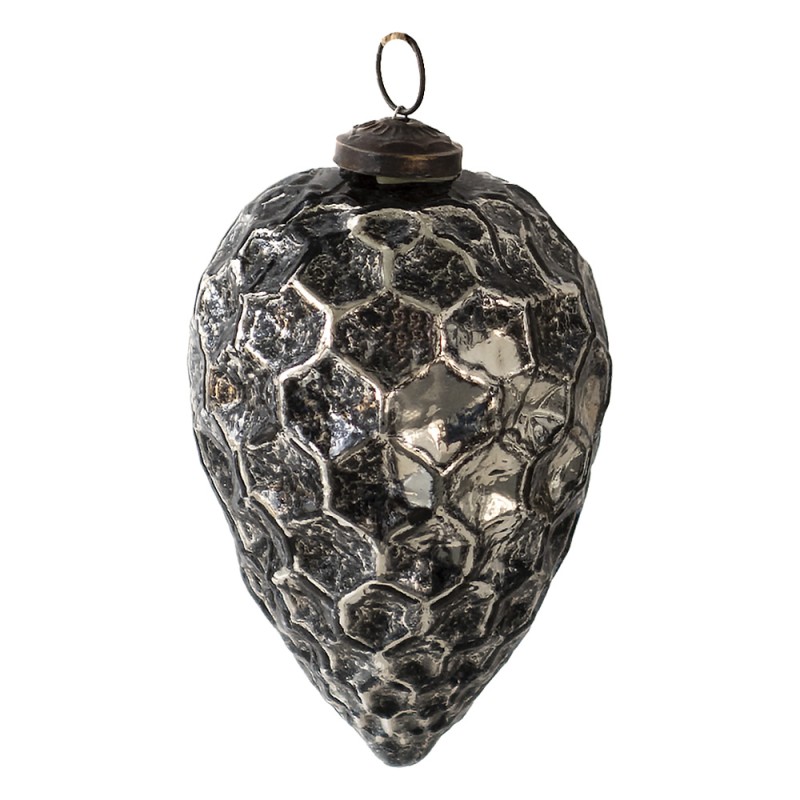 Clayre & Eef Christmas Bauble Ø 9 cm Black Silver colored Glass
