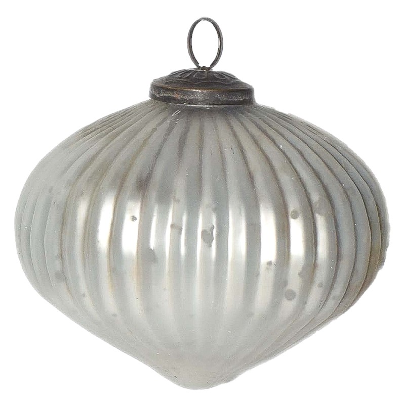 Clayre & Eef Christmas Bauble Ø 12 cm White Silver colored Glass
