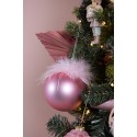 Clayre & Eef Christmas Bauble Set of 4 Ø 10 cm Pink Glass