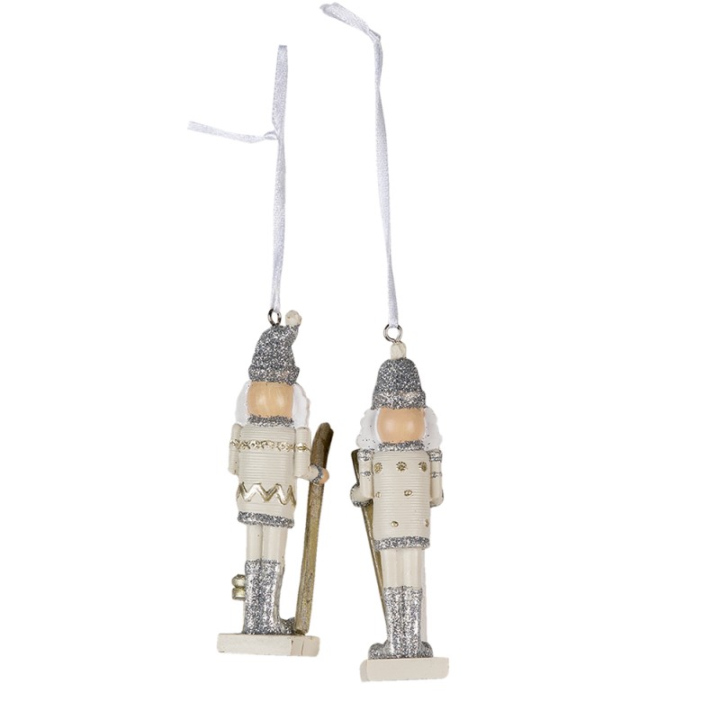 Clayre & Eef Christmas Ornament Set of 2 Nutcracker 10 cm Silver colored Plastic