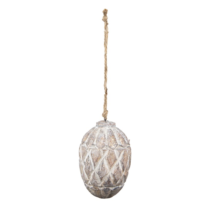 Clayre & Eef Christmas Ornament Pinecone Ø 11x15 cm Brown Grey Wood