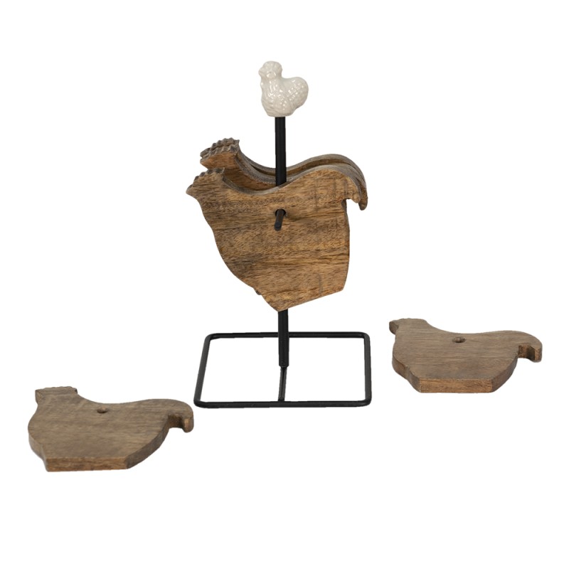 Clayre & Eef Coasters for Glasses Chicken 11x11x22 cm Brown Wood