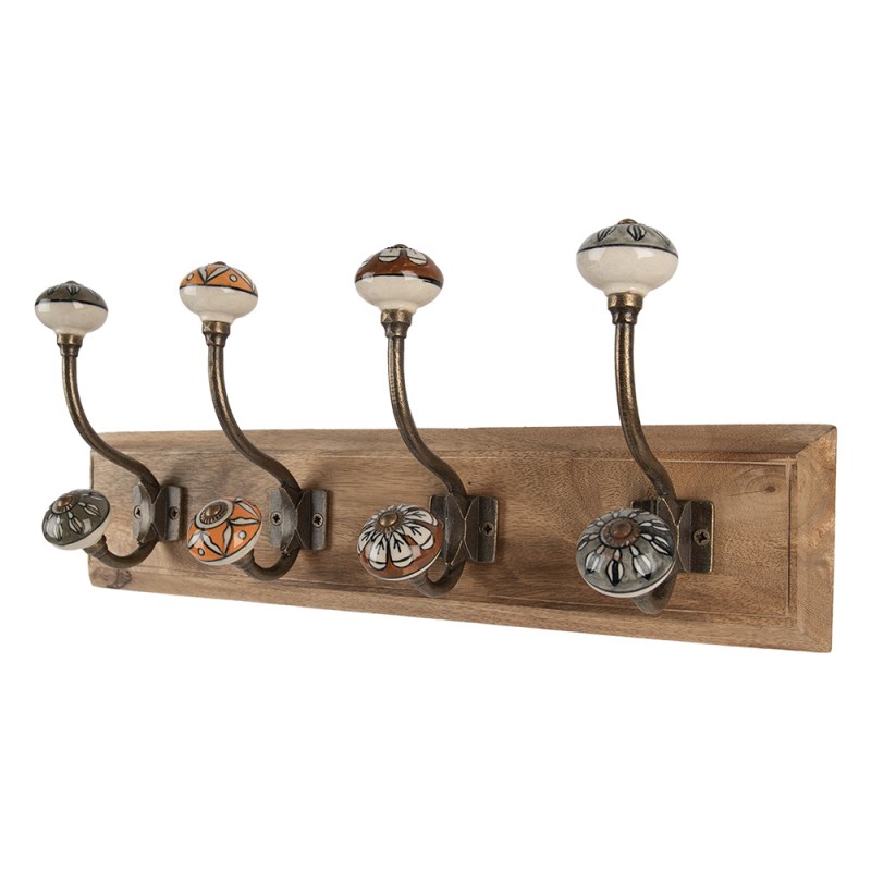 Clayre & Eef Wall Hook Set of 4 45x11x18 cm Brown Wood