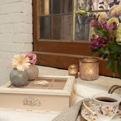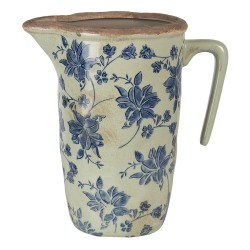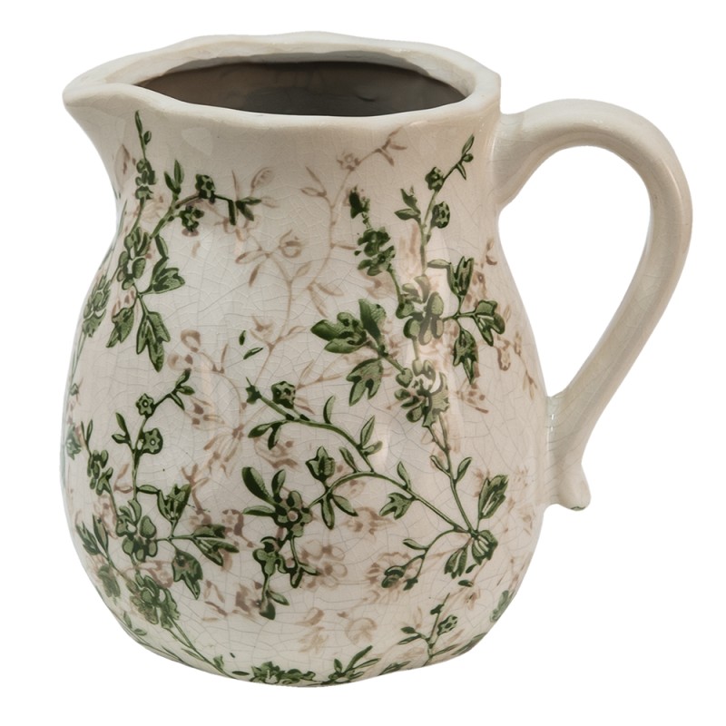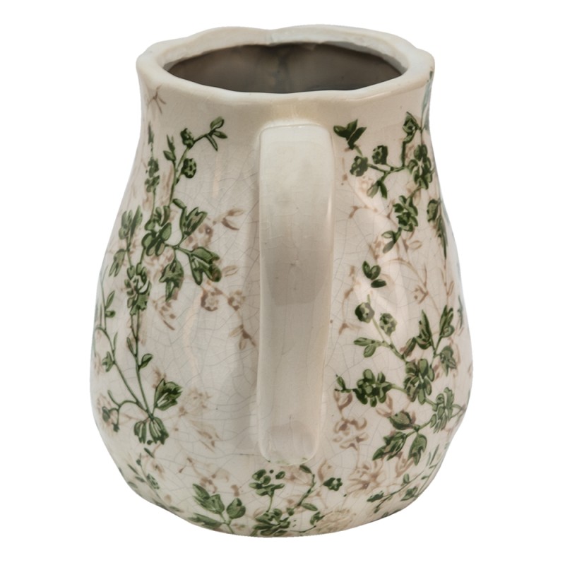 Clayre & Eef Decoration can 16x13x15 cm Green Beige Ceramic Flowers