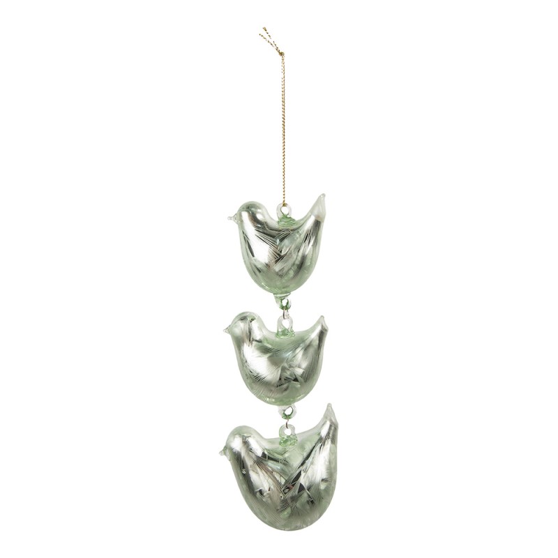 Clayre & Eef Pendant Birds 16 cm Green Glass