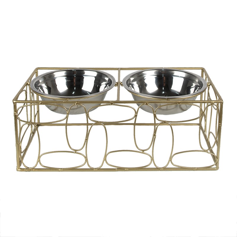 Clayre & Eef Food bowl dog 2x500 ml Gold colored Iron